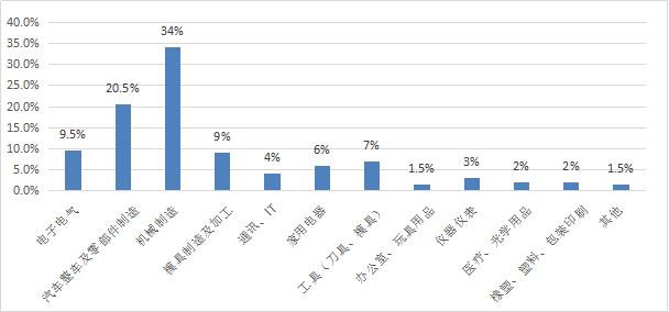 在本次展会观众来源中,以机械制造为主,占34%,汽车整车及零部件制造占20.5%,模具制造及加工类别占9%;橡塑包装类另占2%,还有待进一步提升该类别人员的数量。电子电气类别占9.5%,家用电器行业也吸引了6%的人员参与。