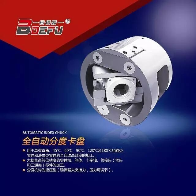 产品涉及:中实、中空气动卡盘、液压卡盘、立式卡盘、前置式卡盘、分度卡盘、浮动卡盘、半通孔卡盘、筒夹系列、油压回转缸和气压回转缸系列等,以上产品结构独特创新,安全可靠,性能优越,已通过国家权威机构认证和ISO9001:2008 质量体系认证,并先后获得了多项国家专利。所有产品以“合理的价格、可靠的品质、优质的服务”深受广大新老用户的青睐,产品广泛适用于数控车床、普通车床、加工中心、钻铣床、焊接设备、管螺纹机床以及流水线生产装置和自动化控制系统等。