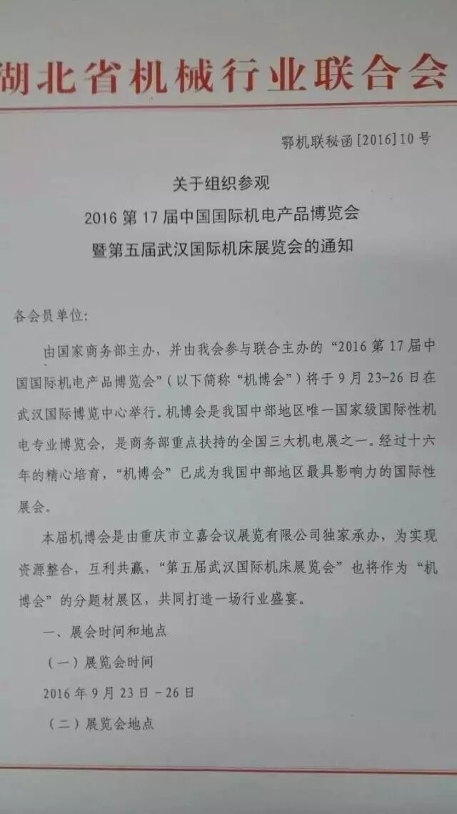 第17届中国国际机电产品博览会暨武汉国际机床展览会将于9月23日在武汉国际博览中心举办。为迎合当前行业形势,自7月份以来,各个行业协会及相关部门积极做好观众邀请工作,为了帮助我国广大制造企业正确理解工业4.0和中国制造2025的本质,应用智能制造技术,推动制造业转型升级,加强国际技术交流,相关媒体e-works数字化企业网也将于9月23日在洲际大酒店举行第二届智能制造国际论坛,论坛规模达1000人以上,且对制造业企业不收取费用。