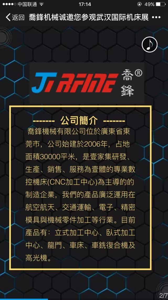 東莞喬鋒機械有限公司与您相约武汉国际机床展