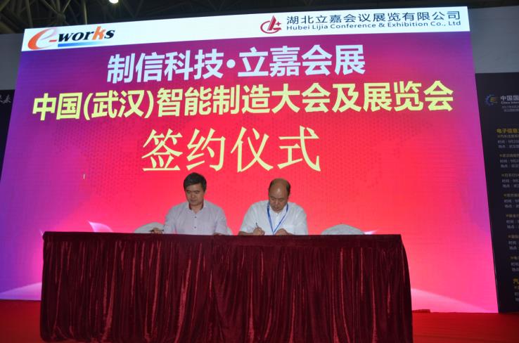 2017年9月20日,武汉制信科技有限公司与湖北立嘉会议展览有限公司就联合举办“中国(武汉)智能制造大会暨展览会”合作签约仪式在武汉举行。重庆市立嘉会议展览有限公司总经理陈棋先生与武汉制信科技有限公司总经理黄培先生出席签约仪式,双方代表分别在项目合作协议书上签字。