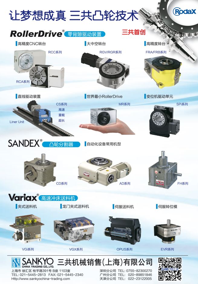 “SANDEX®”是三共凸轮分度器的注册商标,有数十系列近百种产品,实现了从世界最小到世界最大的各种规格,满足了客户的多种选择需要。